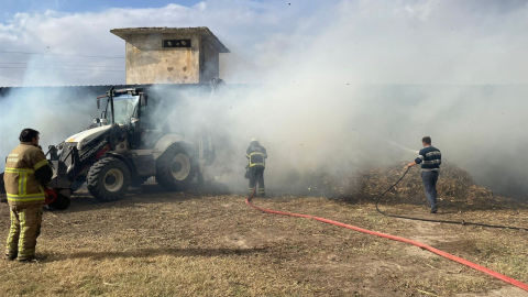 Yangında damlar içinde bulunan yüzlerce balya samanla birlikte yanarken 25 büyükbaş ve 150 küçükbaş hayvan ise yanmaktan son anda kurtarıldı.