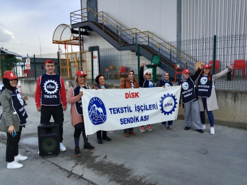 Gemlik serbest bölgede faaliyet yürüten Aunde Teknik fabrikasında sendikaya üye olan işçilerin işten atılması üzerine DİSK Tekstil fabrika önünde eylem yaptı.