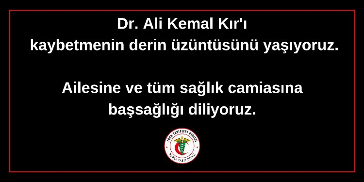 Bursa Tabip Odası, Ali Kemal Kır'ın hayatını kaybettiğini sosyal medya hesabından duyurdu.
