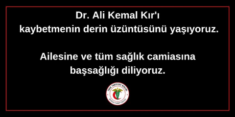 Dr. Ali Kemal Kır vefat etmiştir. Ailesine ve tüm sağlık camiasına başsağlığı diliyoruz.