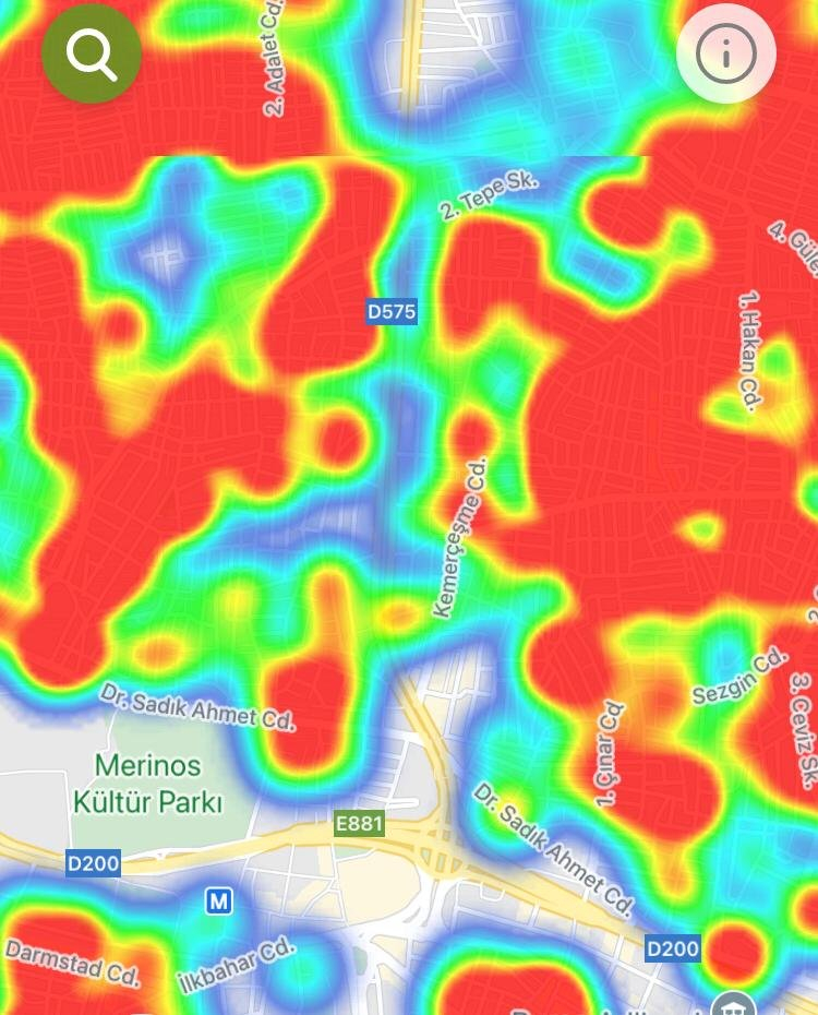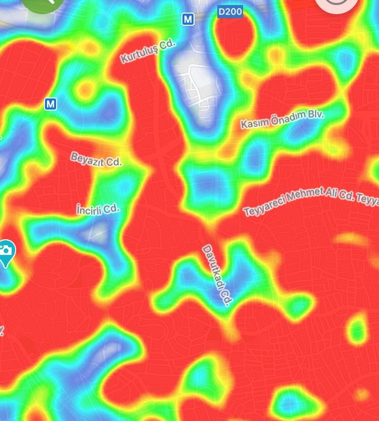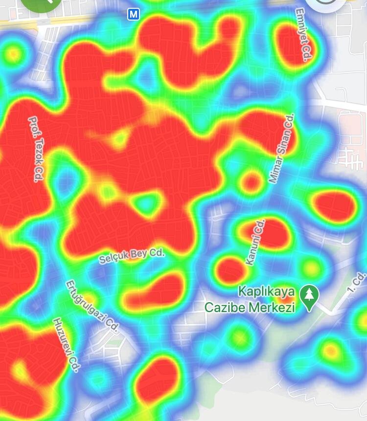 Şehrin hemen hemen tüm noktalarında kırmızı rengin fazlalığı dikkat çekti.