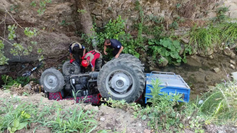 Bursa’nın Orhangazi ilçesinde geri manevra yaparken kontrolden çıkan bir traktör dere yatağına uçtu. Yaklaşık 3 metrelik derede ters dönen traktörün yaşlı sürücüsü hayatını kaybetti.