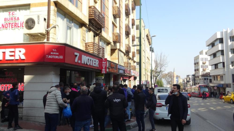 Bursa’da hafta sonu şehir merkezinde sadece 2 nöbetçi noter olunca, resmi işlem yaptırmak isteyenler uzun kuyruklar oluşturdu.