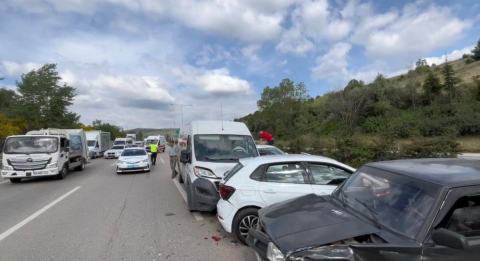 Kaza, Bursa otobanında meydana geldi. Edinilen bilgiye göre, 16 LE plakalı otomobil ile 34 GUT plakalı otomobil çarpıştı. Çarpışmanın etkisiyle yavaşlayan araçlara arkadan gelen 16 NSJ plakalı ticari minibüs de çarptı. Çevredeki vatandaşların ihbarı üzerine olay yerine polis ve sağlık ekipleri sevk edildi. Polis ekipleri çevrede güvenlik önlemi alırken, sağlık ekipleri yaralılara olay yerinde yaptıkları ilk müdahale sonrası hastaneye kaldırdı.