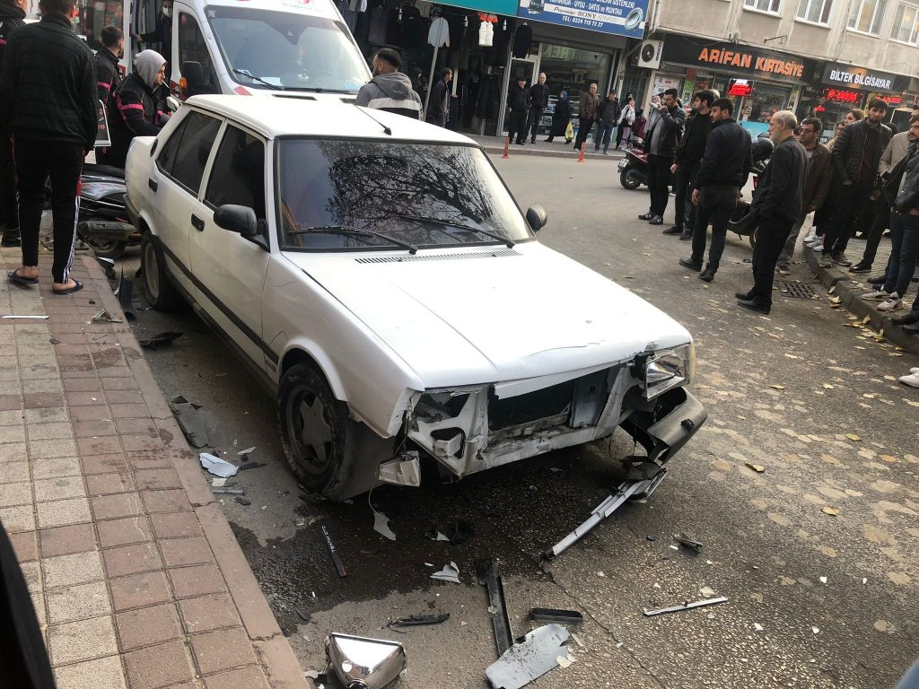 Elektrik sokak üzerinde seyir halinde olan sürücü Suriye uyruklu Abdullah J. (31) yönetimindeki 16 MB 1660 plakalı otomobil, Halyanı sokakta seyir halinde olan sürücü Enes K. (27) yönetimindeki 16 ASK 385 plakalı motosiklete yandan çarptı. Çarpmanın etkisiyle kontrolden çıkan motosiklet, sokaktaki giysi mağazasının vitrin camını kırarak işyerine daldı. Kaza sonucu motosikletin sürücüsü yaralandı. Yaralı olay yerine sevk edilen Ambulansla İnegöl Devlet Hastanesine kaldırıldı.