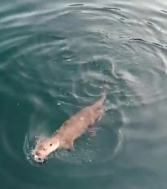 Gemlik'in Narlı Mahallesi sahilinde vatandaşların cep telefonu kamerasına su samuru takıldı. Nesli tükenme tehlikesi ile karşı karşıya olduğu için koruma altında bulunan su samuru, sahilden vatandaşların denize attığı balık ile beslendi. Suya dalıp çıkan su samuru daha sonra gözden kayboldu.