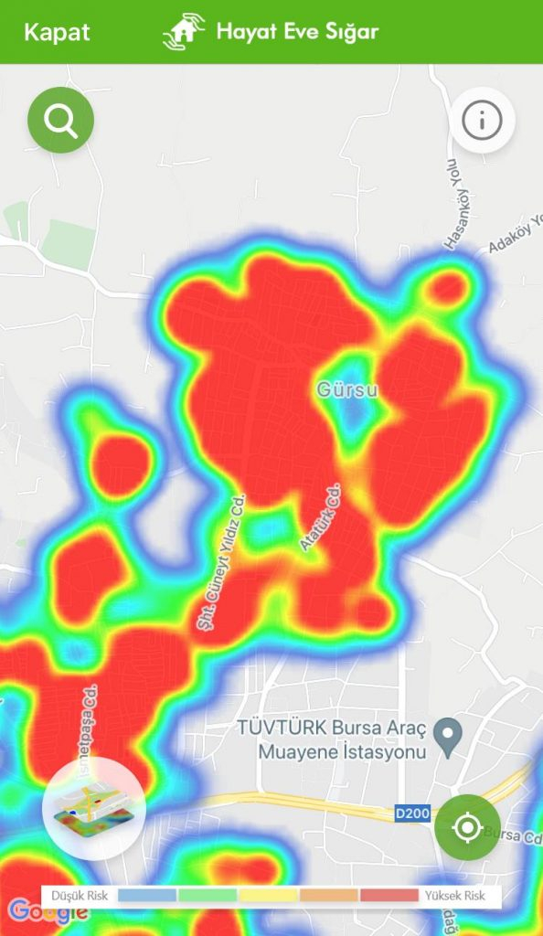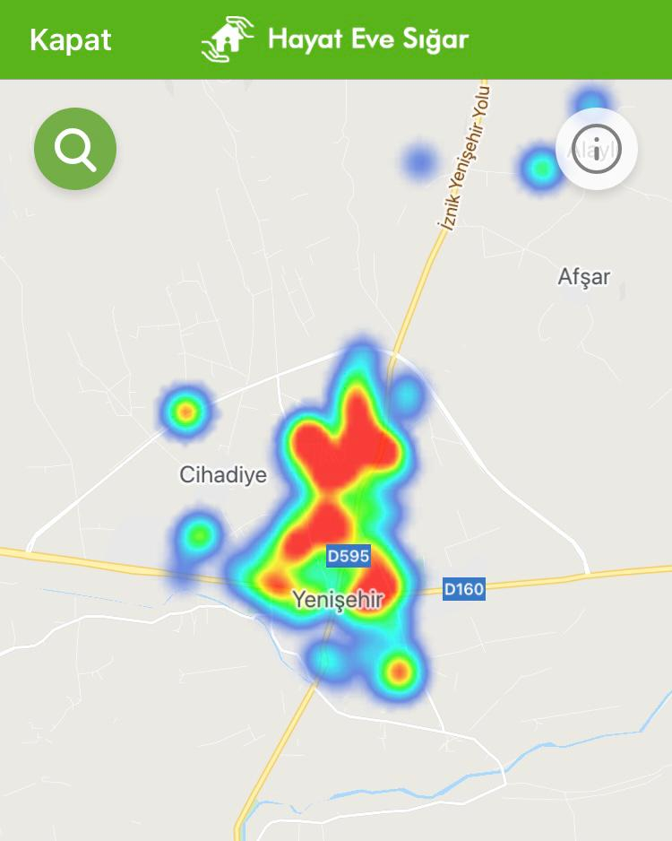 Sağlık Bakanı Fahrettin Koca’nın illere göre haftalık vaka tablosunda Bursa’daki vaka oranı 500,57 olmuştu. Bursa ve ilçelerinde vaka artışları Hayat Eve Sığar uygulamasında da görüldü.
