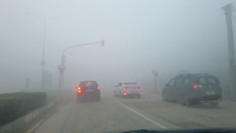 Bursa'nın İnegöl ilçesinde erken saatlerde sis sebebiyle görüş mesafesi 5 metreye kadar düştü, sürücüler zor anlar yaşadı.