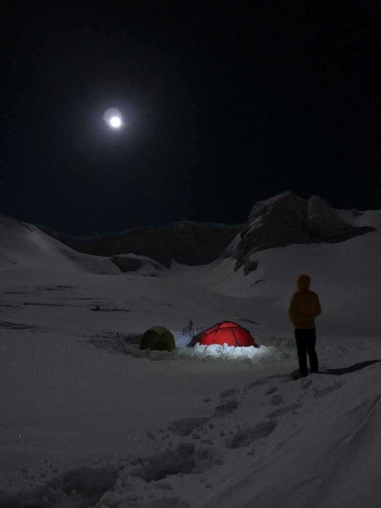 Türkiye’nin en önemli kış ve doğa turizm merkezlerinden biri olan Uludağ’a tırmanan Bursalı dağcılar, 1,5 metreyi bulan kar üzerinde gece sıfırın altında 13 derecede dolunayda kamp yapmanın keyfini çıkardı.