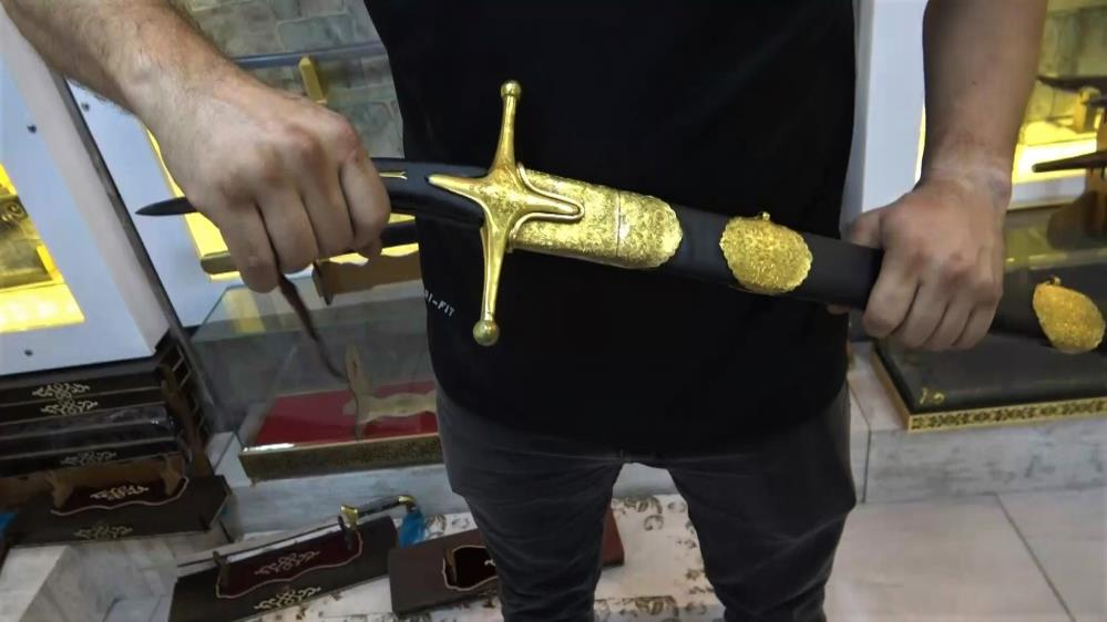 Topkapı Sarayı’nda Kutsal Emanetler bölümünde sergilenen Hazreti Muhammed’e ait kılıcın bire bir replikasını üreten Aziz Şen, “22 yıldan bu yana bıçak imalatı ile uğraşıyorum. Ayrıca 17 yıldır kültürel mirasımız olan kılıçlar, kamalar, hançerler ile uğraşmaktayım. Yaptıklarımız el işi, zaman alan ürünlerdir. Halen talep olduğu için çalışmalarımıza devam etmekteyiz. Kılıç imalatı haricinde Topkapı Müzesi’nde bulunan eserlerin replikasını yapıyoruz. Bu ürünler genellikle altın kaplama ürünler oluyor. En çok rağbet gören ürünlerimizden bir tanesi de Peygamber Efendimiz Hazreti Muhammed’in kılıcı ve Fatih Sultan Mehmet’in kılıcı. Bunlar çok rağbet gören, işçilik isteyen ürünlerdir. Altın kaplama olduğu için de maliyeti biraz yüksek. Maneviyat açısından müşterinin talepleri neticesinde en çok tercih edilen modeller arasında bulunuyor” dedi.