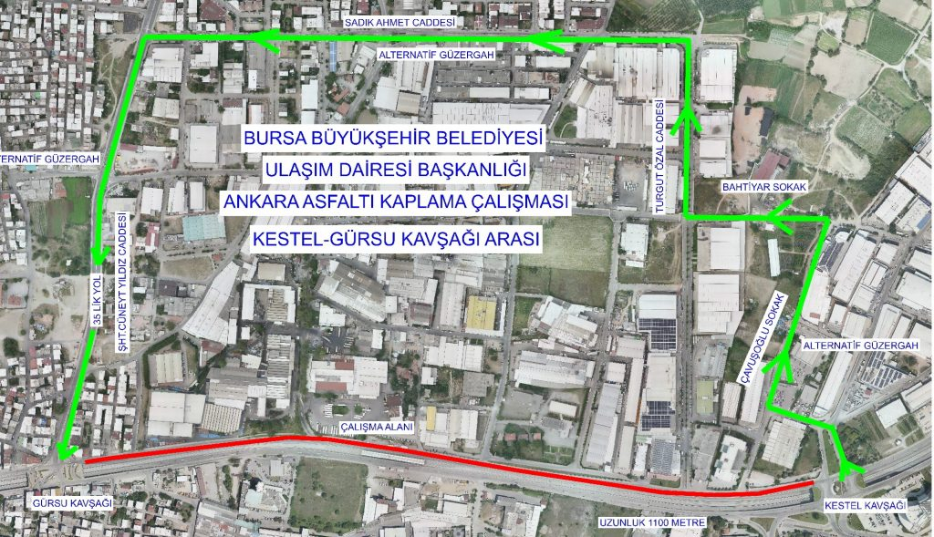 Bursa Büyükşehir Belediyesi tarafından yapılacak asfalt yenileme çalışmaları çerçevesinde Bursa - Ankara yolu Bursa geliş istikameti Gürsu Kavşağı ile Kestel Kavşağı arası 1 Eylül Cuma günü saat 23.00’dan 2 Eylül Cumartesi günü saat 06.00’a kadar ve 2 Eylül Cumartesi günü saat 23.00’dan 3 Eylül Pazar günü saat 11.00’a kadar trafiğe kapatılacak. Bursa Büyükşehir Belediyesi’nden yapılan açıklamada sürücülerin çalışma süresince sürücülerin alternatif güzergahları kullanmaları konusunda uyarılarda bulundu.