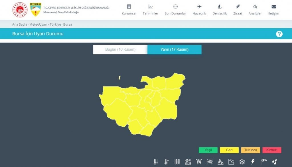Meteoroloji Genel Müdürlüğü, Bursa için sarı uyarı vererek vatandaşları uyardı.