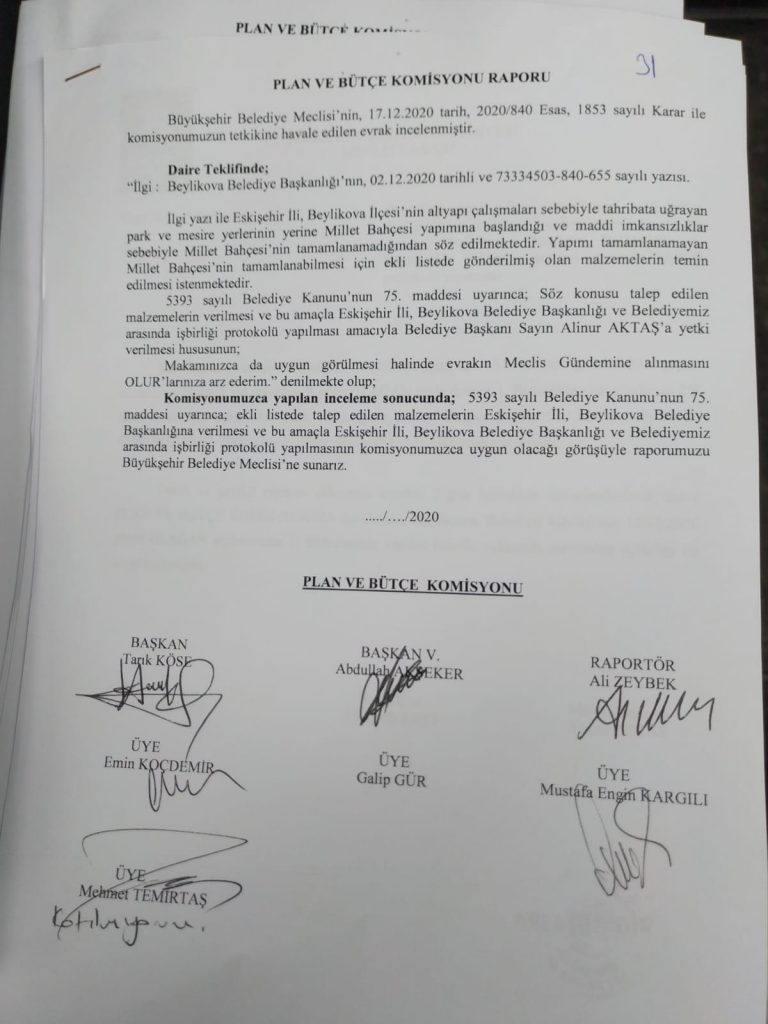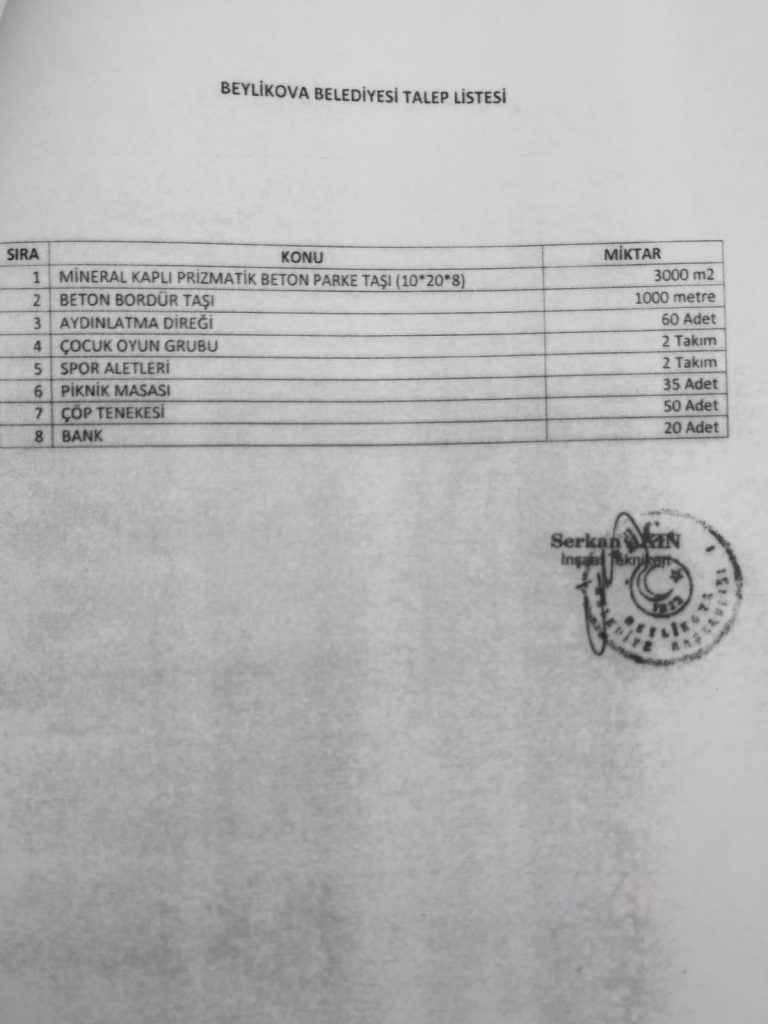 Plan Bütçe Komisyonu’nun, Meclis’in talebiyle hazırladığı rapora göre Beylikova Belediyesi’nin ihtiyaç listesi olarak bakın hangi malzemeler Bursalıların parasıyla alınacak.