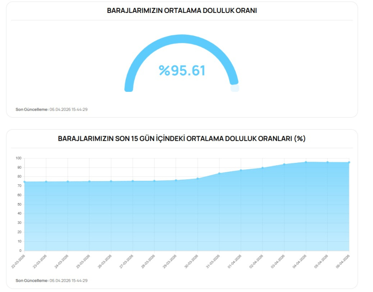 BUSKİ tarafından yapılan açıklamada kent genelindeki barajların ortalama doluluk oranı yüzde 95,61 olarak ölçüldü.