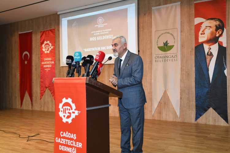 Çağdaş Gazeteciler Derneği (ÇGD) Bursa Şube Başkanı Tayfun Çavuşoğlu, sunuculuğunu Sevda Kurul ve Hatice Nur Derya’nın yaptığı ödül törenindeki konuşmasında, gerçeğin peşinden koşmanın ağır bedeller gerektirdiğine işaret ederek, “Bu zorlu dönemde, mesleki dayanışmamızı göstermek ve basın özgürlüğü mücadelesini bir kez daha haykırmak için bir aradayız. Gazeteciliğin, demokrasinin temel direği olduğu bilinciyle; halkın haber alma hakkını savunmak, sadece gazetecilerin hakkı ya da görevi değil, aynı zamanda demokratik ve sağlıklı bir toplumun hava koşulu gibidir. Türkiye'de gazetecilik, ne yazık ki 2025 yılı itibarıyla ağır baskı altında nefes almaya çalışmaktadır” dedi.