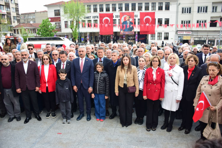 Törene CHP Bursa İl Başkanı Nihat Yeşiltaş, Bursa Milletvekili Orhan Sarıbal, Parti Meclisi Üyesi Canan Taşer, Osmangazi Belediye Başkanı Erkan Aydın, İlçe Başkanları, Parti Yöneticileri ve çok sayıda yurttaşların katıldığı tören, çelenk sunumu, saygı duruşu ve İstiklal Marşı'nın okunmasıyla başladı.