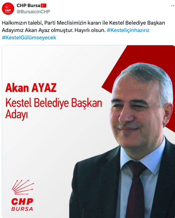 Bursa'da ilçe belediye başkan adaylarının tamamını açıklayan CHP, Kestel'de değişime gitti.