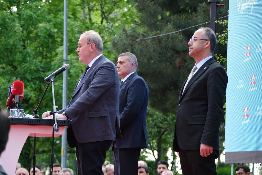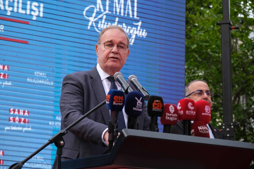 CHP Bursa Büyükşehir Belediyesi Başkan Adayı Mustafa Bozbey ise 14 Mayıs seçimlerinin demokraside bir yol ayrımı olduğunu vurgulayarak “Yeni binamız çok güzel olmuş. Ama 15 gün boyunca bu binada oturmayalım, gece gündüz evleri ziyaret edelim. Kadınları, gençleri ikna edelim. 15 gün sonra akşam saatlerinde de bu meydanda kutlama yapalım. Mevcut sistem devam ederse Ortadoğu ülkesi olacağız. Diğer yol ise demokrasinin, özgürlüğün, insan haklarının, adaletin, hakça paylaşımın yolu. İnsanlarımıza mutlaka bu yolu anlatmamız, bu yolda oy vermelerini sağlamamız gerekiyor. Nasıl bir ülkede yaşayacağımıza attığımız oylarla karar vereceğiz” dedi.