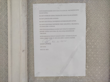 CHP Üyesi Münir Kurtoğlu, parti binasının kapalı olmasını eleştirerek yazdığı notu Atatürk Caddesi üzerinde bulunan parti kapısına astı. Kurtoğlu yazdığı notta şu cümlelere yer verdi;