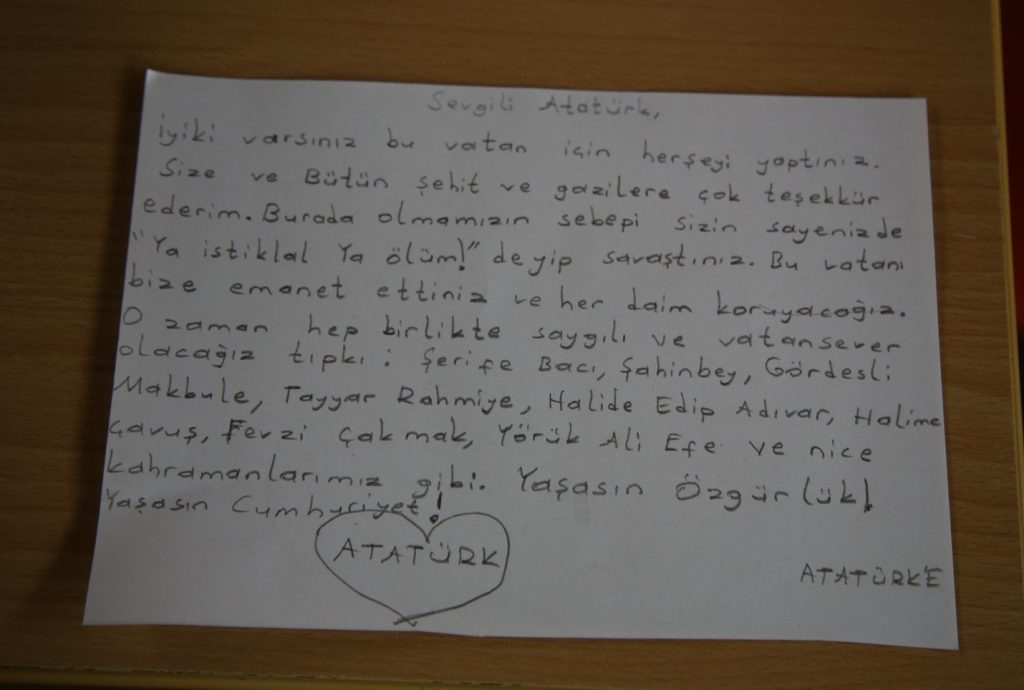 Nilüfer Belediyesi’nin düzenlediği ‘Cumhuriyet’in Çocukları’ atölye çalışmasında öğrenciler, Mustafa Kemal Atatürk’e mektup yazarak, Cumhuriyet’e sahip çıkma sözü verdi.