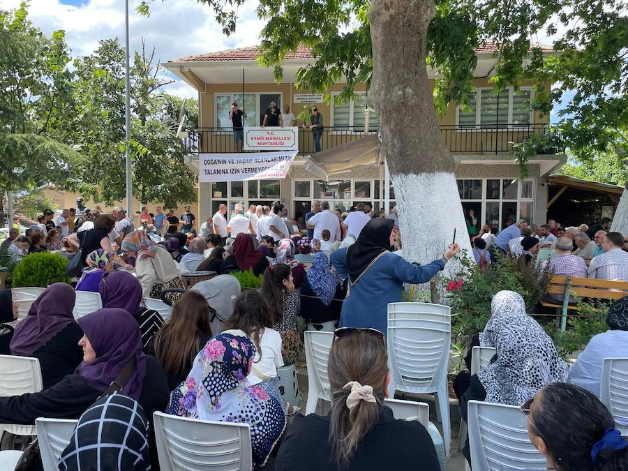 Eymir Köyü adına açıklamada bulunan Ayşegül Döğer, yüzlerce yıldır bu bölgede yaşayan yurttaşlar olarak geniş, verimli topraklara ve meralara sahip bu alanda yaşamları ve çocuklarının geleceği için çiftçilik ve hayvancılık yapmaya devam etmek istediklerini söyledi. Verdikleri yaşam mücadelesinde ‘devletimizden, belediyelerimiz isteklerimiz var’ diyen Döğer, “Mesela, kapalı sistem sulamanın ovamızdaki tüm tarlalara ulaşmasını istiyoruz. Devletimizden yeterli mazot desteği istiyoruz. Tohum, fidan, yem ve gübre desteği istiyoruz. Ancak görüldüğü üzere bu isteklerimiz görülmüyor ama bizler maden istemiyoruz" diyerek sözlerini sürdürdü.