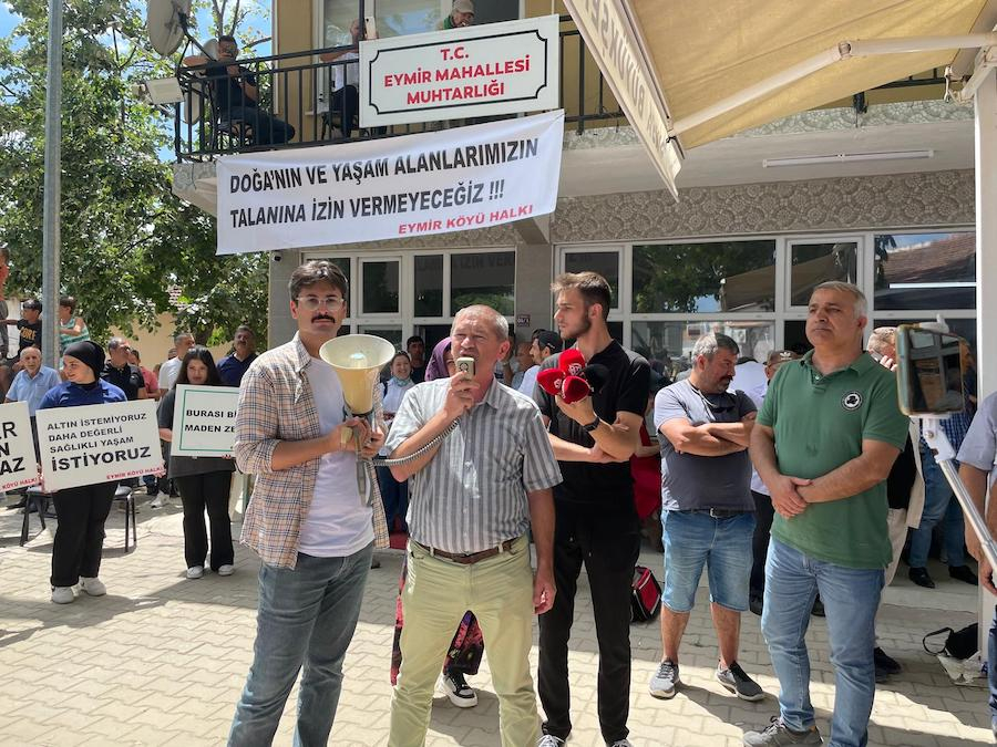 Bursa’nın İnegöl’e bağlı Eymir Köyü’ne kuş uçuşu yaklaşık 2 kilometre uzaklıkta Maden Tetkik ve Arama tarafından altın ve bakır madeni arama çalışmaları başlatıldı. Köylerine ait sulama göletinin hemen üst bölgesinde 15 ayrı lokasyonda 18 sondaj kuyusunun açıldığını ve 4 bin 500 metrekarelik alanda arama çalışmalarının yürütüldüğünü öğrenen Eymir Köyü halkı çalışmaların durdurulması için harekete geçti.