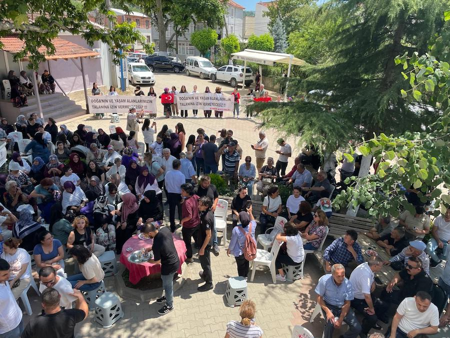 İnegöl’ün Eymir Köyü’nde arama çalışmalarına başlanan altın madenine karşı bir araya gelenler “Siyanüre karşı omuz omuza” sözünde birleşerek köylerini, yaşam haklarını savunacaklarının sözünü verdi.