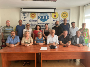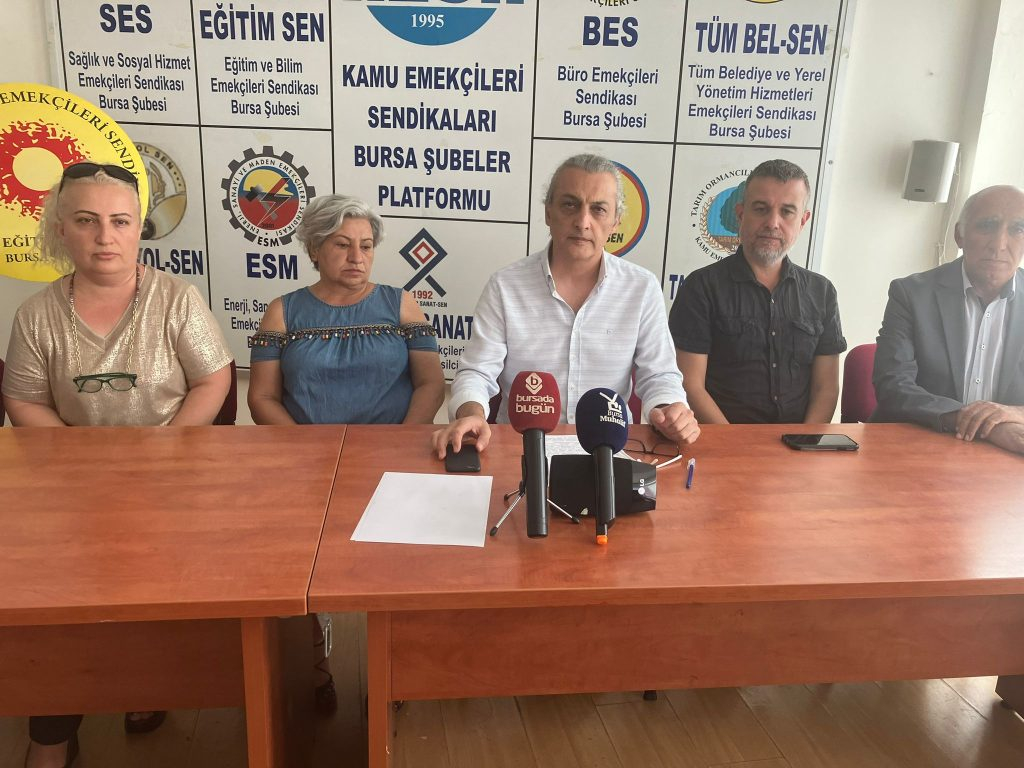 KESK Bursa Şubeler Platformunun ortak salonunda yapılan açıklamayı Eğitim Sen Bursa Şube Başkanı Derviş Erdem okudu.