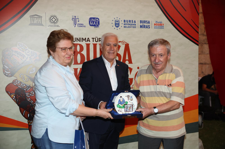 Konuşmaların ardından Başkan Mustafa Bozbey, Şinasi Çelikkol ve Ünver Oral’a Bursa Miras Yaşam Boyu Başarı Ödülü’nü takdim etti. Devamında, Başkan Bozbey ve Büyükşehir Belediyesi yöneticileri UNIMA Türkiye tarafından hazırlanan tasfiye derisini imzaladı. Buluşmanın açılış akşamı, Hayali Tayfun Özeren’in Tarihi Zindankapı’nın büyülü atmosferinde perdeye yansıttığı ‘Karagöz’ün Uzay Yolculuğu’ isimli gölge oyunu ile son buldu. Oyun, izleyicilere Bursa’nın saklı güzelliklerini anlatırken büyükler de en az çocuklar kadar keyifle ve kahkahalarla izledi.