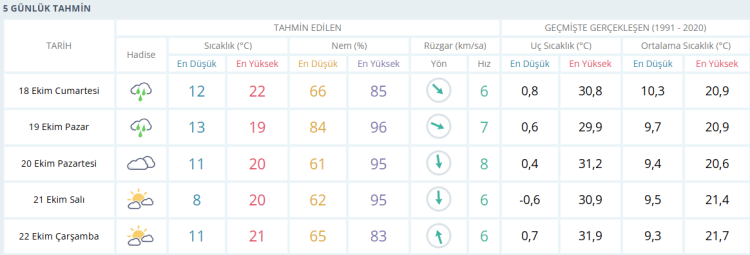 Meteoroloji Genel Müdürlüğü tarafından yayınlanan Bursa'nın beş günlük hava tahmini şöyle: