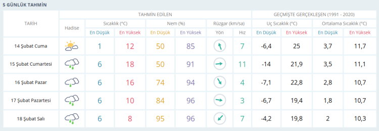 Bursa için yapılan 5 günlük hava tahmin raporu şöyle: