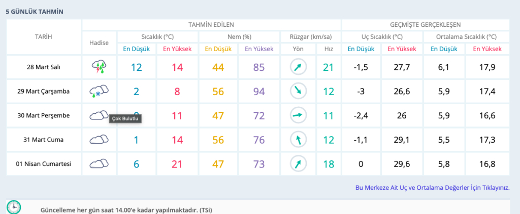 Bursa'da önümüzdeki 5 gün için beklenen hava durumu ise şöyle: