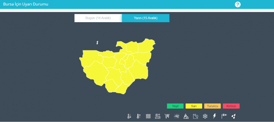 Meteoroloji Genel Müdürlüğü, Bursa, İstanbul'un Anadolu Yakası ile Sakarya, Kocaeli, Bilecik, Yalova için yağış sağanak uyarısında bulundu.