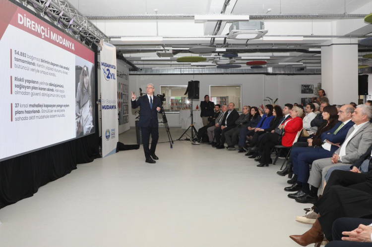 Mudanya Belediye Başkanı Deniz Dalgıç, 31 Mart 2024 yerel seçimlerinin ardından geçen iki yılı Mudanya Gençlik ve Spor Merkezi’nde düzenlenen toplantıda kapsamlı bir sunumla anlattı. Toplantıya, meclis üyeleri, muhtarlar, siyasi partiler ve sivil toplum kuruluşlarının temsilcileri ile basın mensupları ve vatandaşlar katıldı.