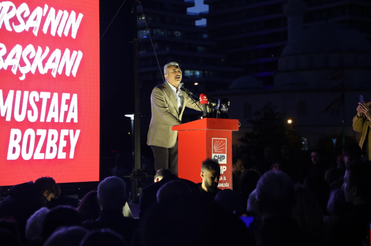 ‘‘31 Mart’ta bu kent bir karar verdi. Bu kent, yıllar sonra değişim dedi… Bu kent, hizmet dedi… Bu kent, adalet dedi… Ve bu kent, Mustafa Bozbey dedi! Bursalılar iradesini ortaya koydu yaklaşık 200 bin oy farkıyla, neredeyse %10’luk bir oy oranı farkıyla Sayın Mustafa Bozbey’i kentin Büyükşehir Belediye Başkanı seçti. Bu ne demek biliyor musunuz? Bu, sıradan bir seçim sonucu değildir! Bu, Bursa’nın çok net, çok güçlü bir irade beyanıdır! Bu, her iki Bursalıdan birinin “Benim başkanım Mustafa Bozbey’dir” demesidir! Peki şimdi soruyorum size…Başkanımız yaptığı hizmetler için mi cezalandırılıyor? Bozbey’in suçu ; Çocuklarımız için kreşler açmak mı, Bozbey’in suçu, yarattığınız yoksulluğa kent lokantaları ile merhem olmak mı? Bozbey’in suçu zehir saçan asbestli boruları değiştirip, halkın sağlığını düşünmek mi? Yoksa Bozbey’in suçu yaptığı indirimlerle Türkiye’nin en ucuz öğrenci taşımacılığını gerçekleştirmek mi? Yoksa Bozbey’in suçu ağır enflasyon altında yaşam mücadelesi veren gençlerimiz için açtığı Burfaş kafelerle nefes olmak mı? Yoksa Bozbey’in suçu tamamlayamadığınız Çınarcık barajını devreye sokup Bursa’nın su sorununu kökten çözmek mi? Yoksa ; Bozbey’in suçu çiftçiye emekliye destek olacak sayısız projeyi hayata geçirmek mi? Biz biliyoruz ki; buradaki mesele bir kişi meselesi değildir. Buradaki mesele, halkın iradesinin yok sayılmasıdır! 200 bin oy farkını yok saymak demektir bu! Yüz binlerce Bursalının iradesini yok saymak demektir! Bu kentin geleceğine vurulmak istenen bir darbedir! Ama buradan açıkça söylüyoruz: Bursa susmaz! Bursa boyun eğmez! Bursa iradesine sahip çıkar! Bu meydanda toplanan herkes, şunu haykırıyor: “Biz seçtik, biz karar verdik, irademizi kimseye teslim etmeyiz!” Değerli hemşerilerim, Mustafa Bozbey bu kentin sadece belediye başkanı değildir. O, bu kentin değişim umududur. O, bu kentin adalet arayışıdır. O, bu kentin geleceğe olan inancıdır! Ve biz bu umudu, bu inancı kimseye teslim etmeyeceğiz! Bugün burada verdiğimiz mesaj çok nettir:Sandık varsa demokrasi vardır! Sandık varsa irade vardır! Sandık varsa sonuçlara saygı vardır! Eğer sandığı tanımıyorsanız, demokrasiden söz edemezsiniz! Buradan bir kez daha sesleniyoruz: Bursa’nın iradesine dokunmayın! 200 bin oy farkını yok sayamazsınız! Halkın seçtiğini halktan alamazsınız! Ve biz… Bu mücadeleyi sonuna kadar sürdüreceğiz! Çünkü biz inanıyoruz ki; En büyük güç, halkın kendisidir! En büyük meşruiyet, sandıktan çıkan iradedir! Ve o irade burada! Bu meydandadır’’