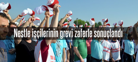 Bursa Karacabey'deki Nestle fabrikasında 21 Haziran'da başlayan grev bugün (1 Temmuz) işçilerin zaferiyle sonuçlandı. 900 işçinin katıldığı grevin ardından yapılan anlaşmaya göre çağrı üzerine çalışanlar 2018 yılında kadroya alınacak, tüm işçilerin ücretlerine de seyyanen 475 lira zam yapılacak.