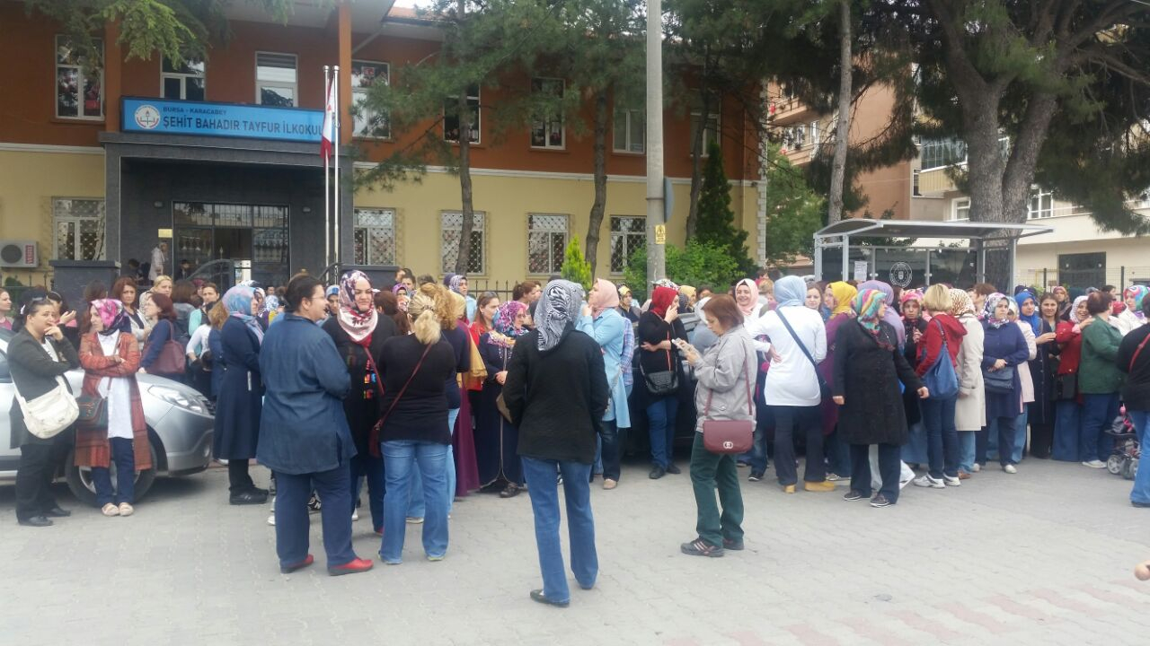 Bursa Karacebey'de bulunan Şehit Tayfur İlkokulu'nun ana binasının imam hatip okulu olarak eğitime devam edeceğini duyan veliler dün okul önünde bir araya gelerek, okullarının dönüştürülmesine izin vermeyeceklerini haykırdılar. "Okuluma dokunma" sloganlarıyla yapılacak dönüşümü protesto eden veliler okul önünde basın açıklamasında bulundular.