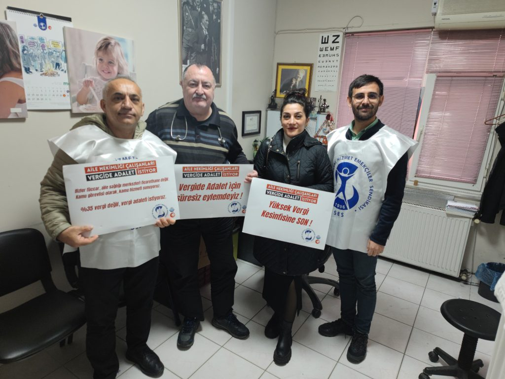 Türk Tabipleri Birliği (TTB) Aile Hekimliği Kolu (AHEK) ile Sağlık ve Sosyal Hizmet Emekçileri Sendikası (SES)’nın başlattığı “Vergide adalet istiyoruz” eylemleri devam ediyor.