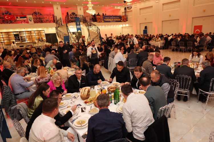 Başkan Mustafa Bozbey ve beraberindekiler, Sancak bölgesinde düzenlenen iftar programlarının son gününde Priyepolyelilerle birlikte iftar açtı. Vatandaşların yoğun ilgi gösterdiği programda, gençlerin sahnelediği yöresel halk oyunları da büyük beğeni topladı. İftar sofrasında manevi iklimi birlikte yaşamaktan son derece mutlu olduğunu belirten Başkan Bozbey, “Burada olmak bizim için sadece bir ziyaret değildir. Aynı zamanda ortak geçmişimizi ve kardeşliğimizi hatırlatan anlamlı bir buluşmadır. Sofralarımız bereketli, kalplerimiz huzur dolu olsun. Şimdiden Ramazan Bayramınızı tebrik ediyorum” diye konuştu.