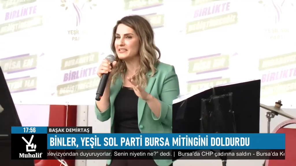 14 Mayıs seçimlerine günler kala Yeşil Sol Parti, Bursa mitingini gerçekleştirdi. HDP eski Eş Genel Başkanı olan, siyasi tutsak Selahattin Demirtaş'ın eşi Başak Demirtaş da mitinge katıldı. Selahattin Demirtaş'ın sesli mesajını miting meydanında duyuran Başak Demirtaş, "Size Selahattin'in selamını getirdim ama sadece selamını getirmedim, aynı zamanda Selahattin'in Edirne zindanından kendi sesiyle sizlere mesajını da getirdim" dedi.