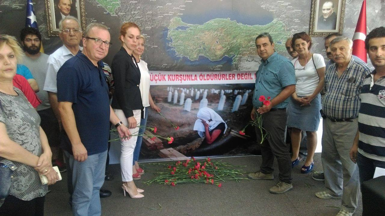 CHP Osmangazi İlçe Başkanı İsmet Karaca ve CHP üyelerinin düzenlediği ziyarette 21 yıl önce Avrupa'nın göbeğinde yaşanan katliamda yitirilenler anıldı. Katledilen 8 bin Boşnak için Karaca konsoloslukta, "Bir petrol kuyusunun, altın madeninin bulunduğu dünyanın en ücra köşelerine bile çıkartma yapan tabur tabur asker gönderen batılı ülkeler NATO-BM bu utanç tablosunu sadace seyretmişlerdir. Yıllarca emperyalizme karşı birlikte mücadele eden,halklar aralarına ırkçılık tohumlarının serpilmesiyle kapı komşularını dahi boğazlayabilmiştir." şeklinde konuştu.