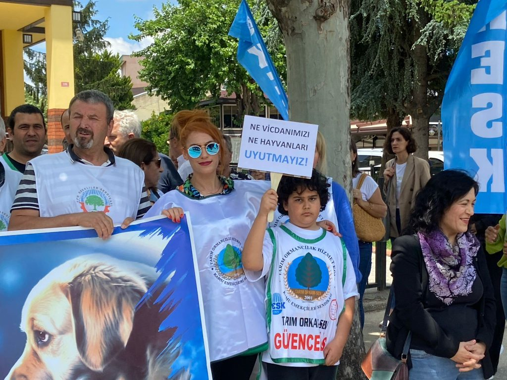 Tarım Orkam-Sen Bursa Şubesi sokak hayvanları yasa tasarısına karşı Doğa Koruma ve Milli Parklar 2. Bölge Müdürlüğü önünde basın açıklaması yaparak protesto etti.