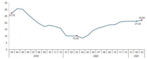 Mart 2021'de endekste kapsanan 81 maddeden, 26'sının ortalama fiyatında azalış olurken, 3'ünün ortalama fiyatında değişim olmadı, 52'sinin ortalama fiyatında ise artış gerçekleşti.