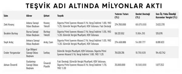 Bursa Sanayi Odası Başkanı İbrahim Burkay 2021 ve 2022 yıllarında hiç kurumlar vergisi ödemedi. 59 milyon liralık yatırımının 11.8 milyon lirasını devlet karşıladı.