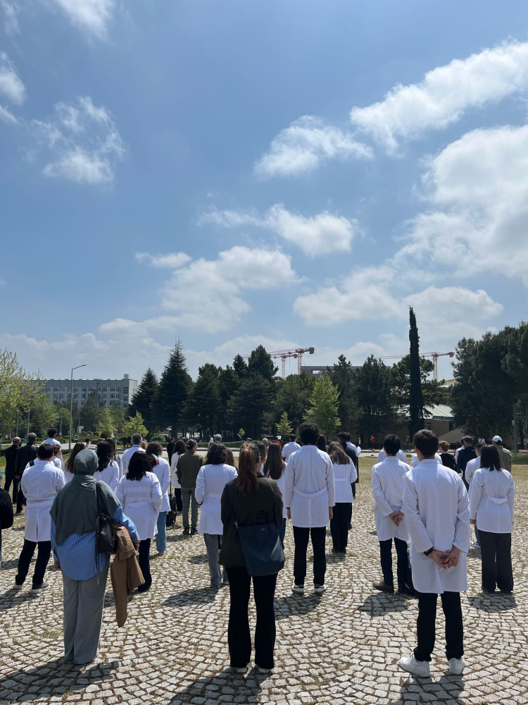Meselemiz insan onuru, adalet, özgürlük, yaşam hakkı ve geleceğimizdir diyen öğrenciler, “Ekrem İmamoğlu’nun haksız bir şekilde tutuklanması açıkça hukuk sistemimizin çürümüşlüğünü gözler önünde sermektedir. Geleceğin hekimleri olma bilinciyle bu çürümüşlüğün tam karşısındayız! Anayasal haklarını kullandığı için gözaltına alınan arkadaşlarımızı muayene dahi etmeyen sağlık çalışanlarına, orantısız ve insanlık dışı müdahalelerle barışçıl gösterilere zarar vermeye çalışan güvenlik güçlerine bu memleketin asıl sahibi biziz diyoruz. Gözaltında çıplak arama, taciz ve işkence suçtur. Failleri yargı önünde hesap verene kadar geri adım atmayacağız! Bu tür uygulamalar insan haklarını ve evrensel hukuk ilkelerini açıkça çiğnemektedir, derhal durdurulmalıdır” çağrısı yapıldı.
