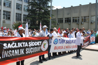 Bursa Uludağ Üniversitesi Tıp Fakültesi Hastanesi'nde de bir araya gelen hekimler, sağlıklı çalışma şartları ve şiddetsiz bir meslek hayatı için haykırdılar.