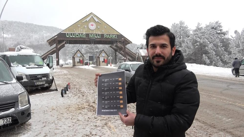 Uludağ Milli Parkı'na kendi araçları ile girmek isteyen sürücüler motosiklet için 40 lira, otomobil için 60 lira, minibüs için 80 lira, midibüs için 300 lira otobüs için ise 600 lira giriş ücreti ödüyor. HGS'si olamayan sürücüler için giriş ücreti plakaya yazılıyor. Giriş yapan sürücüler 15 gün içerisinde PTT şubelerinden giriş ücretini ödeyebiliyor. 15 günü geçiren sürücülere ise geçiş ücretinin 10 katı kadar ceza uygulanıyor.