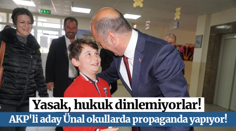 Okullarda siyasi toplantı ve propaganda yapılması yasak olmasına rağmen, AKP’nin Mudanya Belediye Başkan adayı Ahmet Murat Ünal, seçim bölgesindeki okullarda sınıflara kadar girerek propaganda yaptı. İlçe Milli Eğitim Müdürlüğü ise çocukların siyasal olarak istismar edilmesine sessiz kaldı.