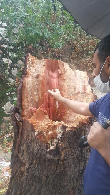 Bursa'nın Gemlik ilçesinde akşam saatlerinde etkili olan kuvvetli sağanak yağış bazı caddeleri göle çevirirken, yıldırım düşmesiyle bir ağaç parçalandı.