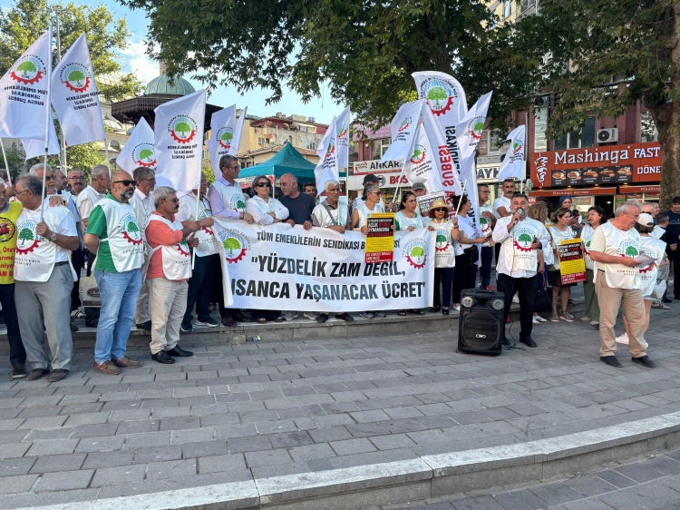 Fomara Meydanı'nda biraraya gelen Tüm Emeklilerin Sendikası üyeleri, 'Rakamlar yalan yoksulluk gerçek' diyerek TÜİK'in açıkladığı enflasyonu protesto etti.